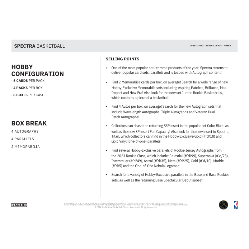 - One of the most popular opti-chrome products of the year, Spectra returns to deliver popular card sets, parallels and is loaded with Autograph content!